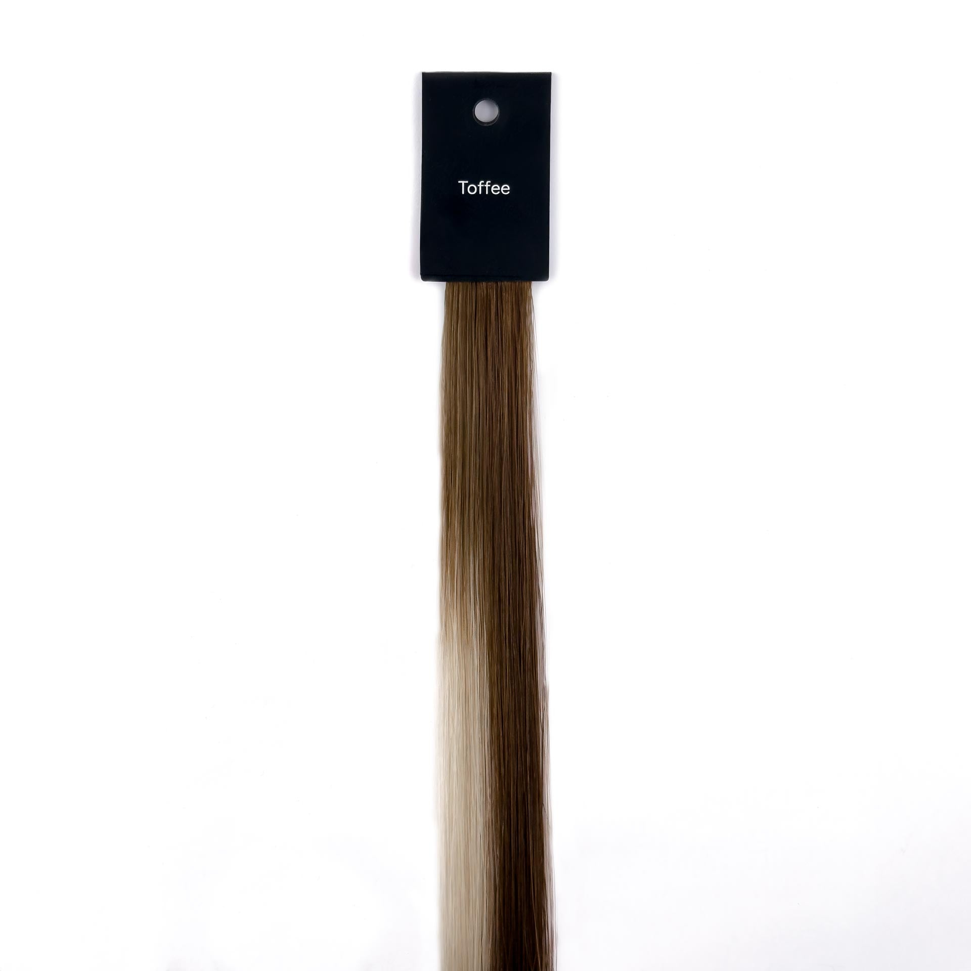 Toffee ist ideal für alle, die einen warmen, natürlichen Balayage-Stil mit einem sanften Farbspiel lieben. Der Ansatz beginnt mit einem warmen Mittelbraun, der sich weich in die Längen zieht. Helle, lichtblonde Strähnen setzen lebendige Akzente und verleihen dem Look Tiefe und einen sonnengeküssten Touch.