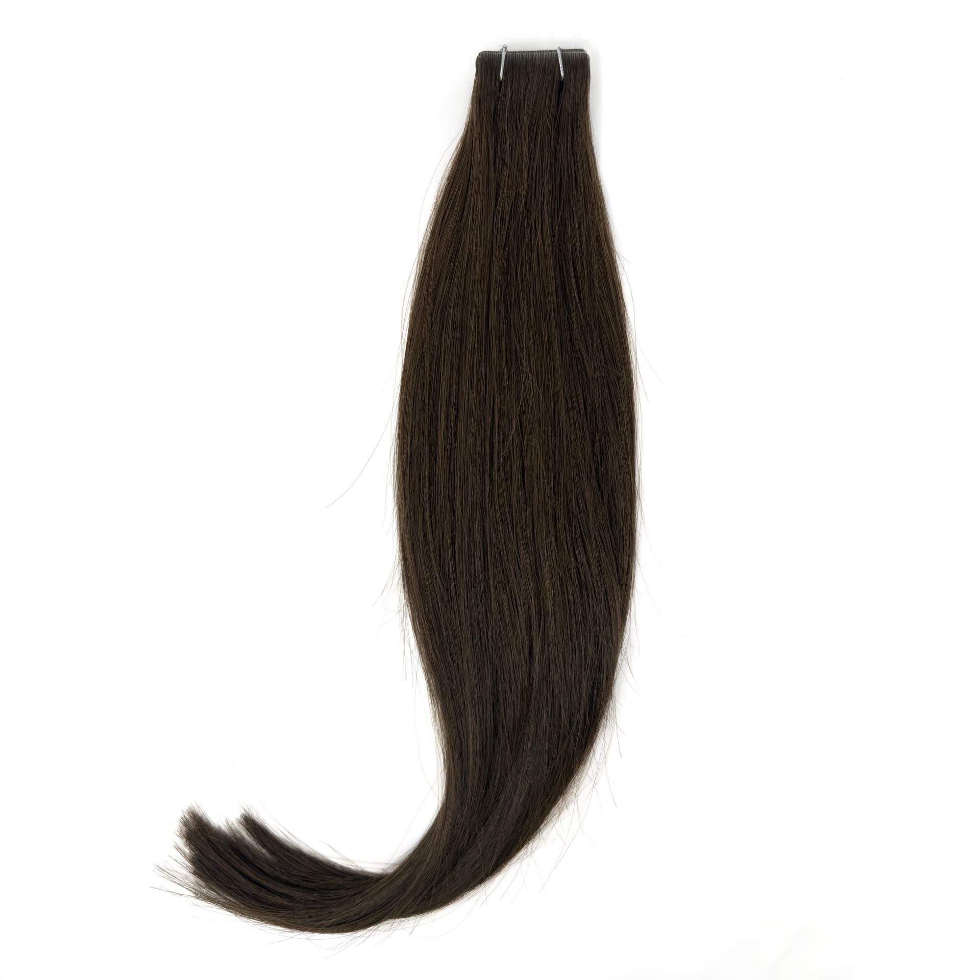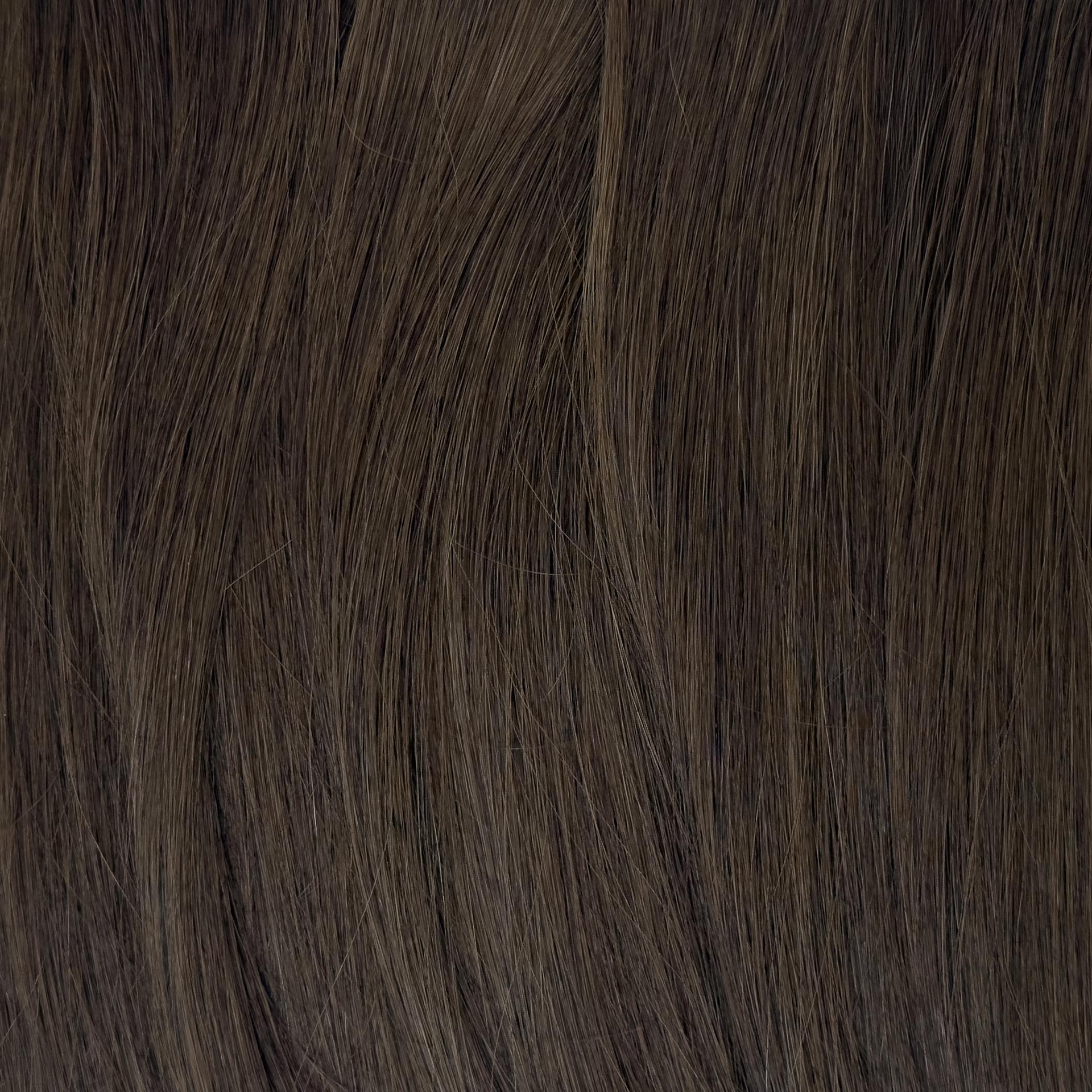 Entdecke unsere hochwertigen Tape-in Extensions in der Farbe Dark Chocolate – ein klassischer, mittelbrauner Naturton für zeitlose Eleganz. Dieser Farbton passt sich nahtlos mittelbraunem Eigenhaar an und sorgt für ein ebenmäßiges, gepflegtes Gesamtbild. Vielseitig kombinierbar und wunderbar dezent.