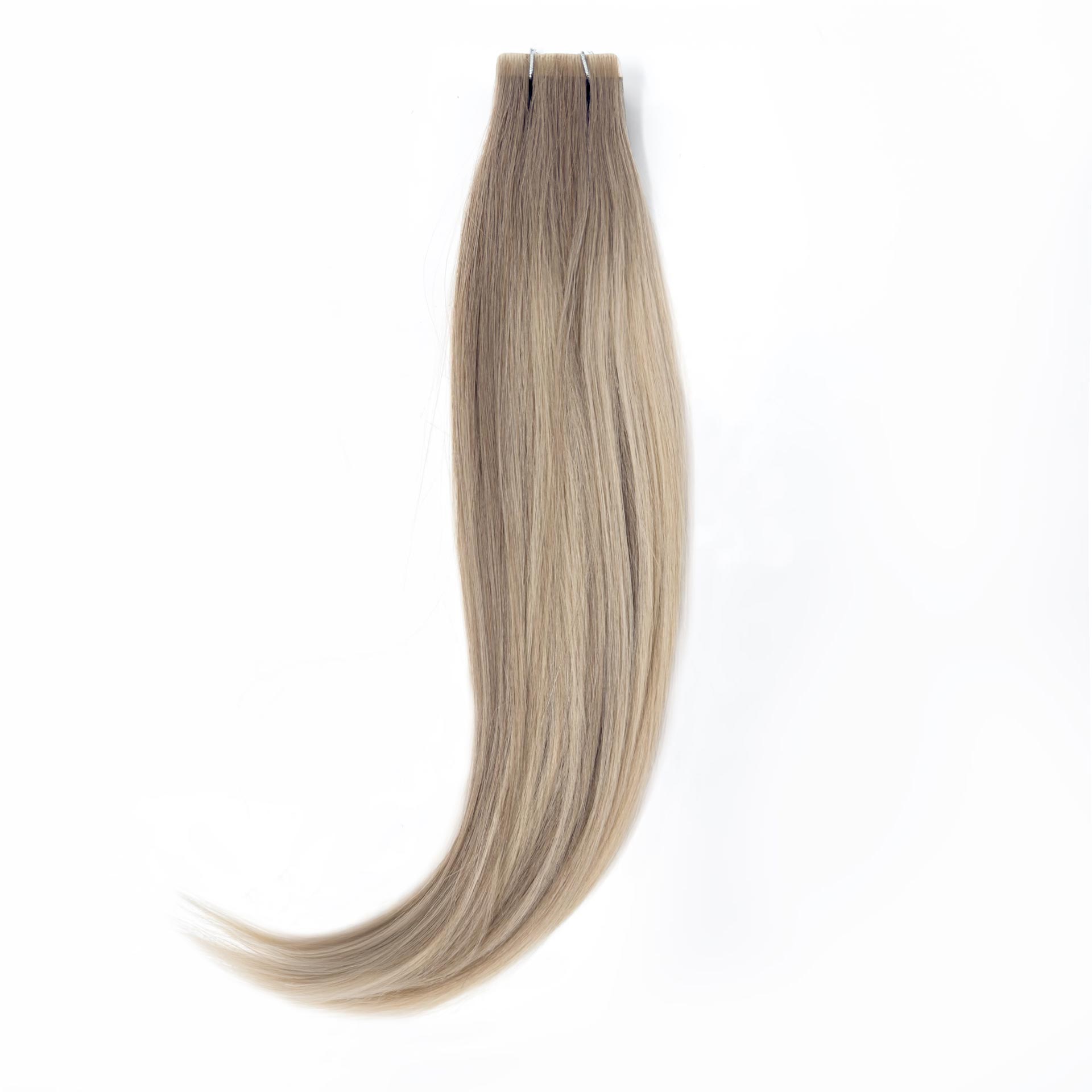 Entdecke unsere hochwertigen Tape-in Extensions in der Farbe Toasted Coconut – perfekt für alle, die einen modernen, kühlen Blondton mit Tiefe und Struktur suchen. Die Kombination aus lichtblonder Grundfarbe und fein gesetzten, kühlen mittelblonden Strähnen verleiht dem Look einen edlen, multidimensionalen Effekt. Für einen frischen, cleanen Blond-Look mit natürlichem Finish.