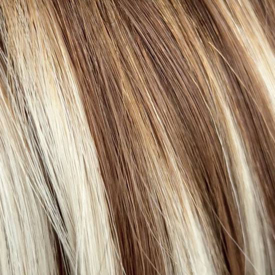 Entdecke unsere hochwertigen Tape-in Extensions in der Farbe Toffee – ideal für alle, die einen warmen, natürlichen Balayage-Stil mit einem sanften Farbspiel lieben. Der Ansatz beginnt mit einem warmen Dunkelblond bis Mittelbraun, der sich weich in die Längen zieht. Helle, lichtblonde Strähnen setzen lebendige Akzente und verleihen dem Look Tiefe und einen sonnengeküssten Touch.